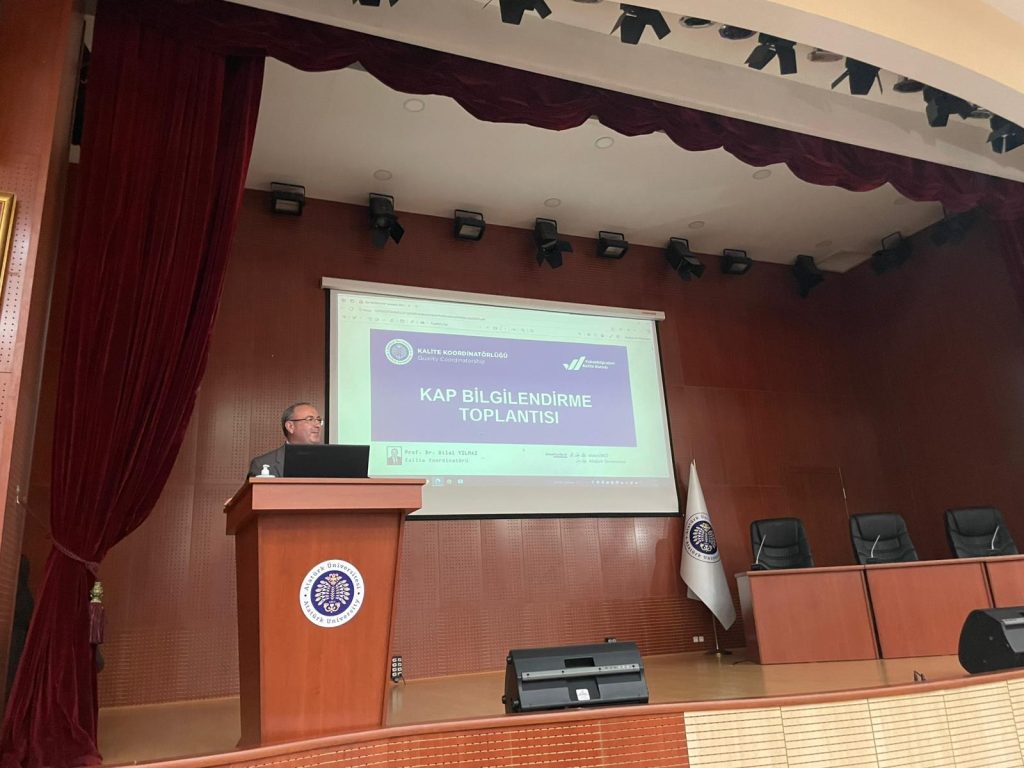 Atatürk Üniversitesi Tıp Fakültesi’nde, Kalite Koordinatörlüğü tarafından Tıp Fakültesi akademik personeline yönelik Kurumsal Akreditasyon Programı (KAP) bilgilendirme toplantısı yapıldı. Toplantıda, Kalite Koordinatörü Prof. Dr. Bilal Yılmaz kalite süreçleri ve Kurum İç Değerlendirme Raporu hazırlıkları hakkında bilgi verdi. Etkinliğe Fakülte Dekanı, Dekan Yardımcıları ve çok sayıda öğretim üyesi katıldı.